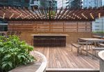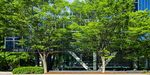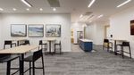- Destination dispatch elevators and spacing markers keep social distancing top of mind